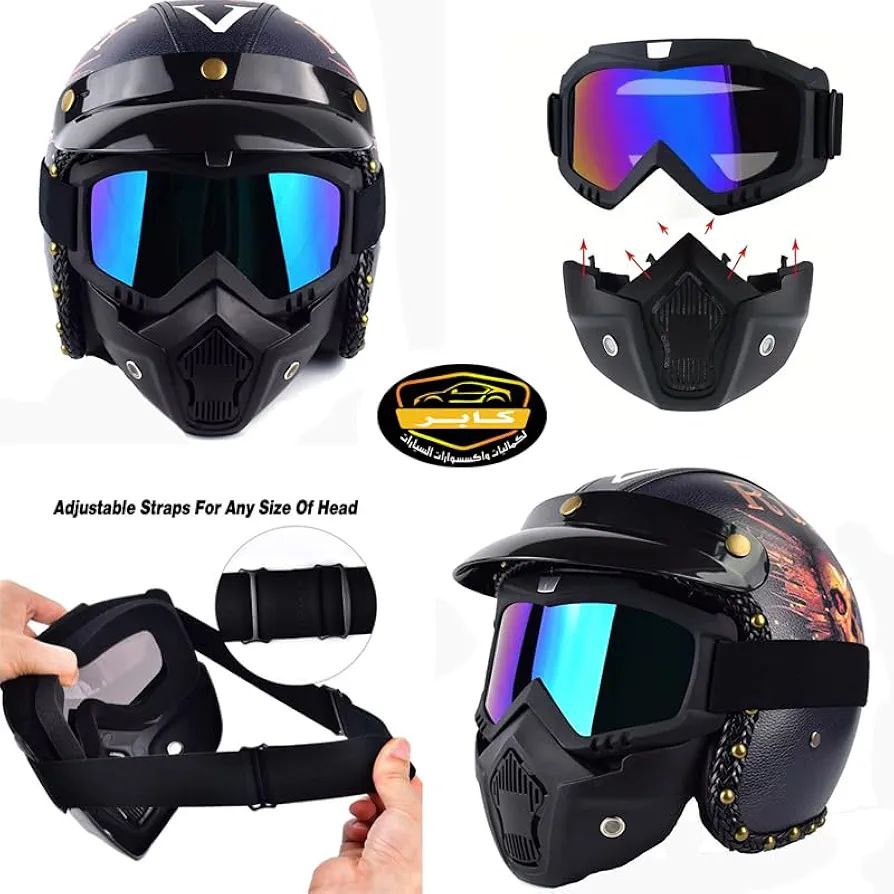 ماسك موتوسيكلات ( motorcycle mask ) مع نظارة عاكسة بيحميك من الشمس والتراب والرياح، والنظارة هتحافظ على عينك وتخلي الرؤية واضحة طول الوقت مهما كان الجو صعب وهيساعدك في السفاري والتخييم يعنى هتستمتع مهما كان مكانك 😍