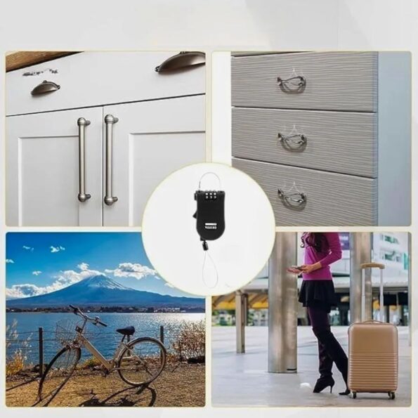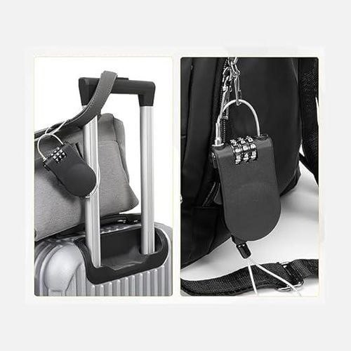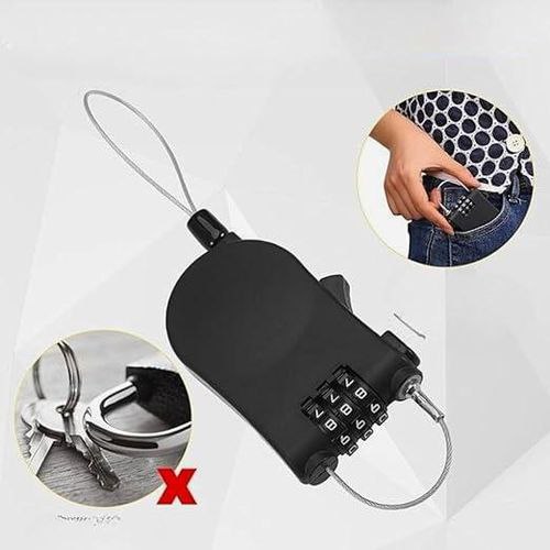 القفل ده معمول للناس اللي محتاجين حماية سريعة وبسيطة من غير مفاتيح. الواير الطويل (120 سم) يخليك تقدر تثبّت بيه شنطة على شنطة تانية، تربط بيه الشنطة في العربية، أو تأمن العفش في نزل الرحلات. الفكرة إن بدل ما تدور على مفتاح وتخاف تضيعه، عندك رمز من 3 أرقام سهل تغييره ومتذكره. التصميم صغير وخفيف وتقدر تحطه في شنطة الرحلات على طول.
